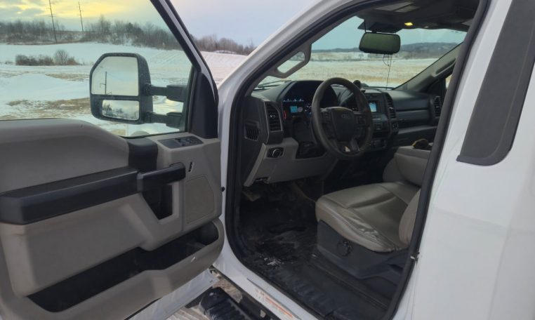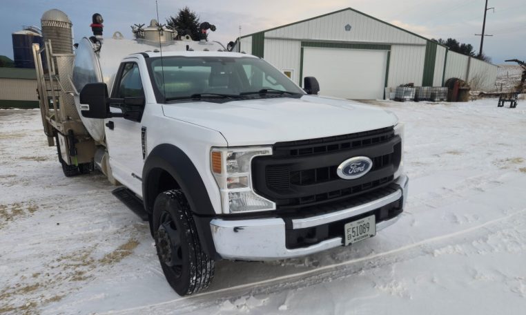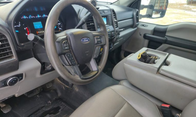 2020 Ford F-600 4X2 SD XL Diesel Truck, Approximately 114,611 Miles and 6,825 Engine Hours, Power Stoke 6.7L V-8 (330 HP) Turbo Diesel Engine, TorqShift 10-Speed Automatic Transmission, Engine Exhaust Braking, Engine Block Heater, A/C, Cruise Control, Power Group (Mirrors, Locks, Windows), Heated Mirrors, 40/20/40 Split Vinyl Bench Seat, Trailer Brake Control, 19,500 GVWR, VIN 1FDUF5HT3LDA01003. Under-CDL Truck.