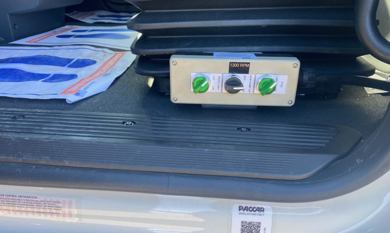 - PTO, RPM, Work Light Controls on Floor by Driver’s Door