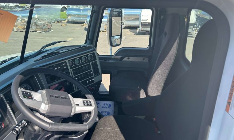 2026 Mack Granite 84BR Chassis, Mack MP8-445 (455HP) Diesel Engine, Mack TMD12AFO-HD mDrive HD 12-Speed Automatic Transmission, Cruise Control, Power Windows and Locks, Mack Air Ride Rear Suspension, Full Lockers, Engine Brake, Engine Block Heater, 93-Gallon Fuel Tank, 8.7-Gallon Diesel Exhaust Fluid Tank, 248.4″ Wheelbase, 3.40 Rear Axle Ratio, Aluminum Wheels, 20,000# Fronts, 44,000# Rear Axles, and 13,500# Lift Steerable Lift Axle, 75,020 GVWR, VIN 1M2GR4NC9TM007990.