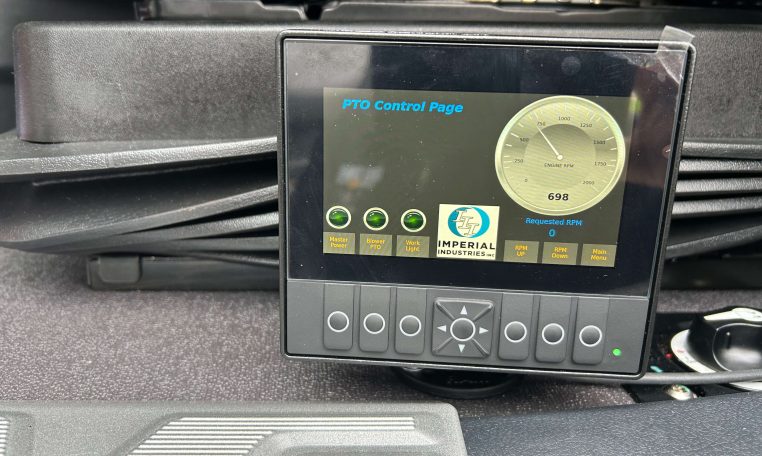 - PTO, RPM, Work Light Controls on Floor by Driver’s Door
