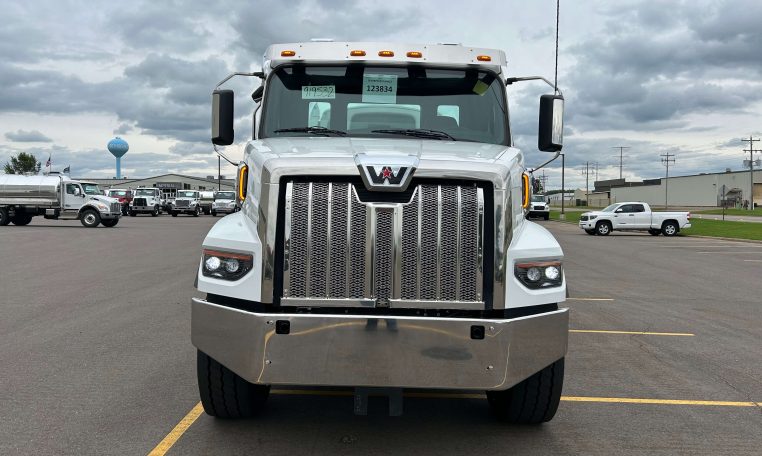 2026 Western Star 47X 8X6 Chassis, Detroit DD13 GEN 5 12.8L (525 HP) Diesel Engine, DT12-1850-OV Vocational 12-Speed Automated Manual Transmission, Jacobs Compression Brake, Full Lockers, Power Windows and Locks, Cruise Control, 245″ Wheelbase, Taperleaf Front Suspension, Rear Airliner Suspension, Engine Block Heater, Cruise Control, Heated Mirrors, 80-Gallon Fuel Tank, 13-Gallon Diesel Exhaust Fluid Tank, 3.73 Rear Axle Ratio, 20,000# Fronts, and 46,000# Rear Axles, and 13,200# Air Lift Steerable Pusher Axle, 79,200 GVWR, VIN 3BJMBPDV6TDWJ6033. Chassis Specs Available Upon Request.